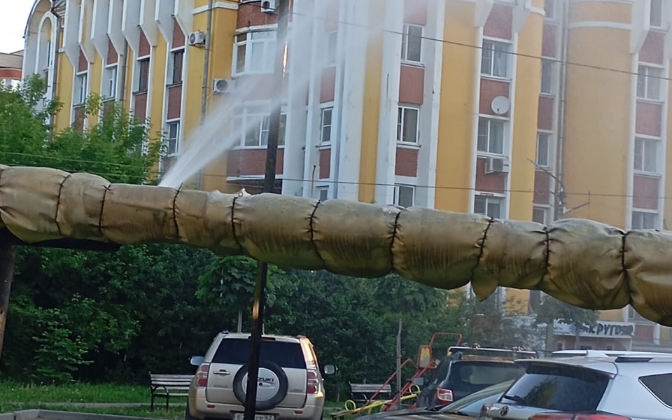 Из трубы льет кипяток, причем масштабы проблемы успели вырасти. "Сначала капало, потом как зафонтанило", - описывает ситуацию очевидец.