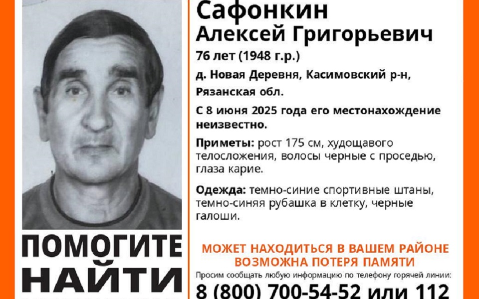 В Касимовском округе пропал 76-летний Алексей Сафонкин.