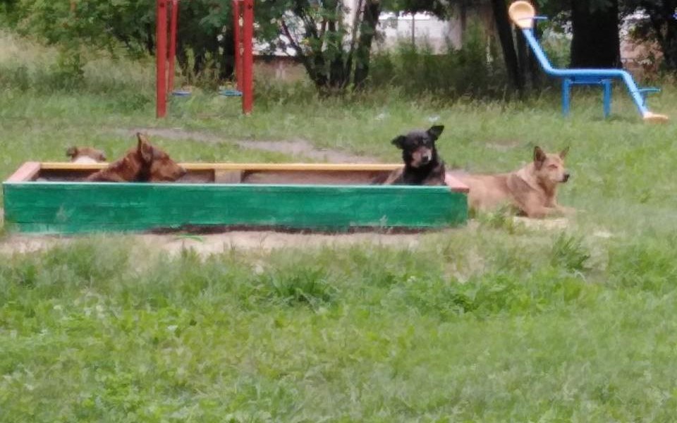 В Дашково-Песочне заметили стаю собак, обитающую на детской площадке.