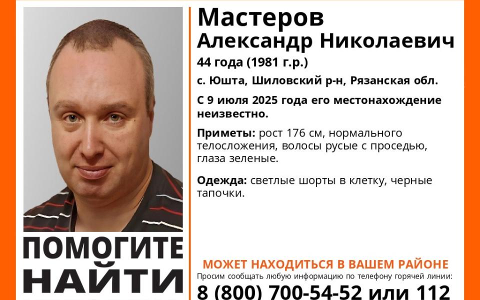 В Рязанской области объявили начало поисков 44-летнего Александра Мастерова. Об этом сообщили в пресс-службе поискового отряда «ЛизаАлерт».