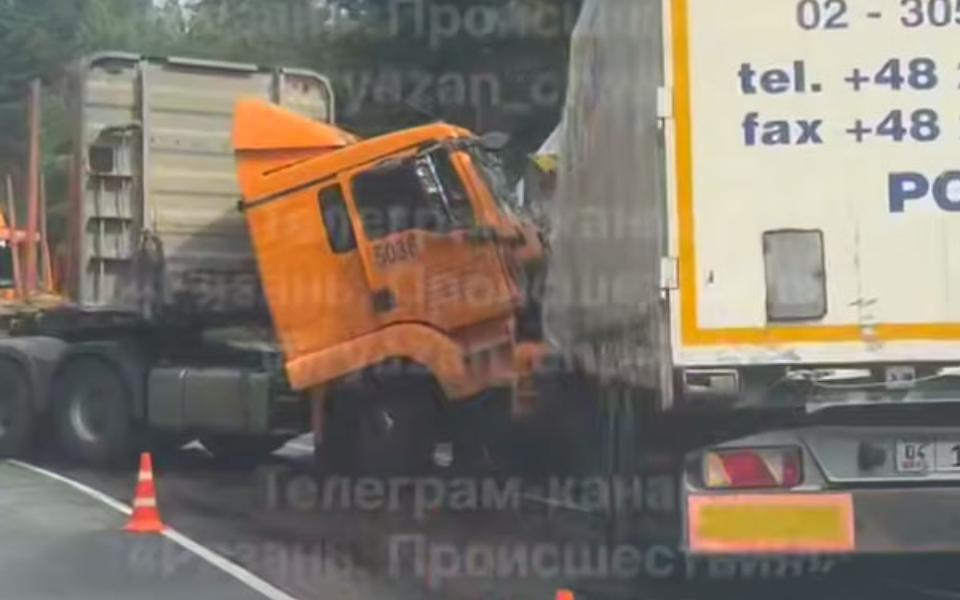 Утром во вторник, 15 июля, стало известно об аварии с участием двух большегрузов. Кадры появились в телеграм-канале «Рязань. Происшествия».