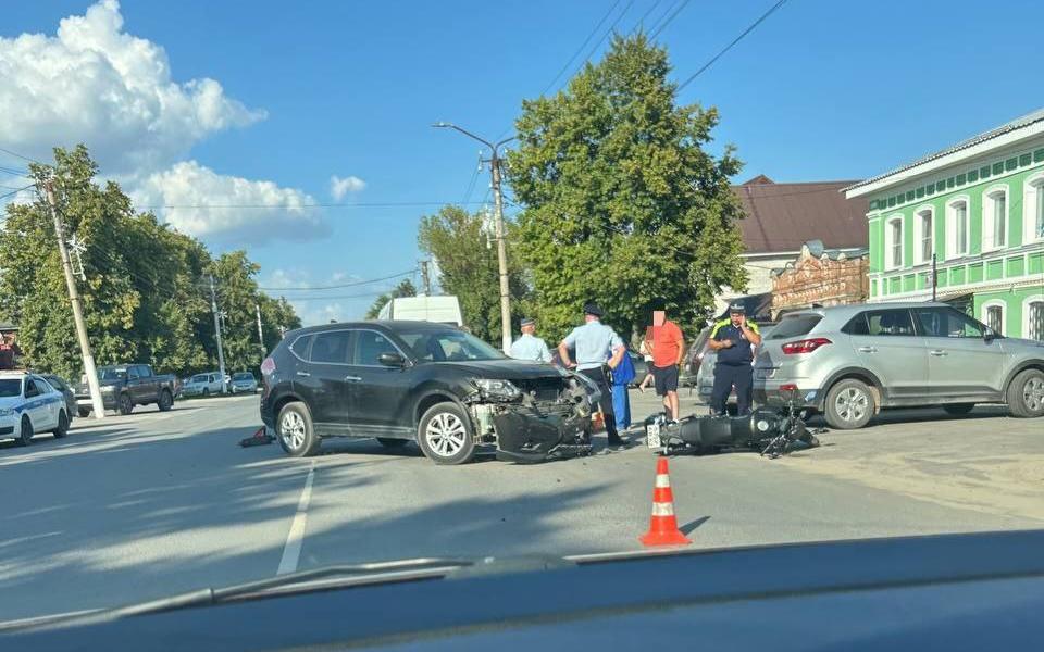 В четверг, 31 июля, в Касимове произошла авария с участием мотоциклиста. Кадры появились в телеграм-канале «Автоклуб Касимов».