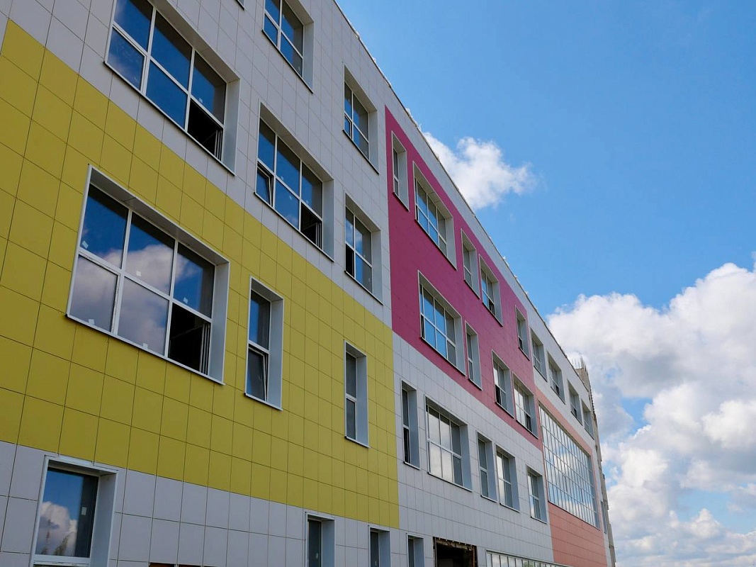 В ходе проверки обсудили сроки выполнения строительства школы на 1100 мест. Сейчас подрядчик монтирует инженерные сети, отделывает фасад и внутренние помещения и остекляет здание.