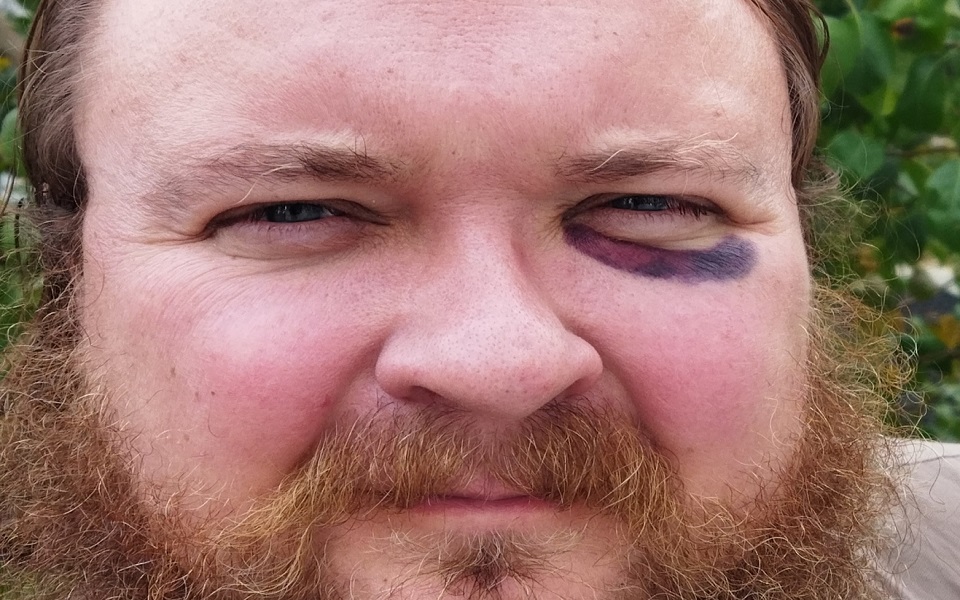 Отец Димитрий пострадал в результате конфликта - на приложенном к посту фото отчетливо виден темно-лиловый синяк на лице.