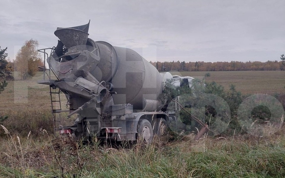 На трассе Рязань — Спасск случилась авария: бетономешалка оказалась в кювете.