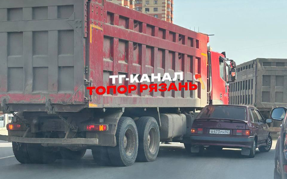 На фото видно, что грузовик притерся к легковушке. Серьезных повреждений у машин нет, информация о пострадавших не поступала. Обстоятельства аварии выясняются.