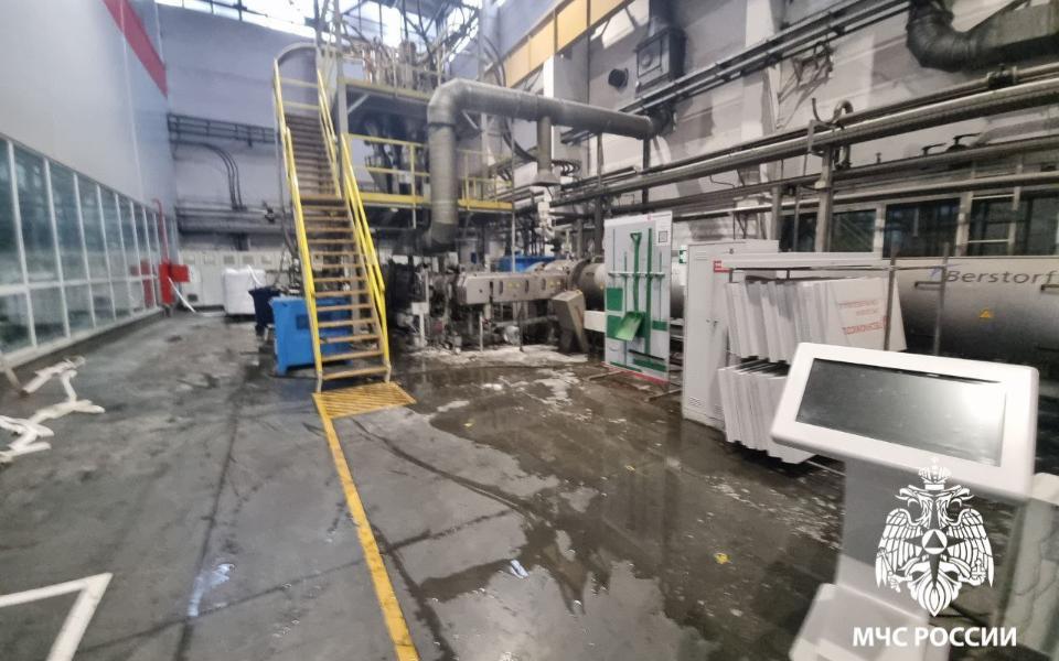 Сигнал о пожаре поступил в 2:46. Загорелся цех на улице Восточный промузел Рязани. На вызов выезжали 20 человек и семь единиц техники. Огонь охватил площадь в пять квадратных метров. Пламя повредило оборудование цеха.
