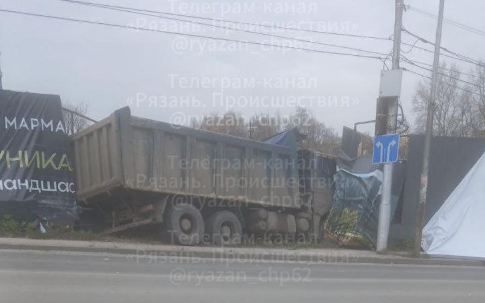 Инцидент произошёл у ЖК «Мармакс» вблизи улицы Гражданской и улицы Новой. Большегруз сбил жестяное ограждение, обтянутое баннером.