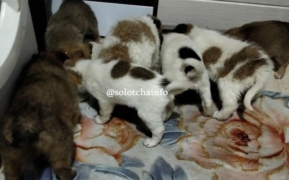 Щенкам примерно полтора-два месяца, едят самостоятельно.