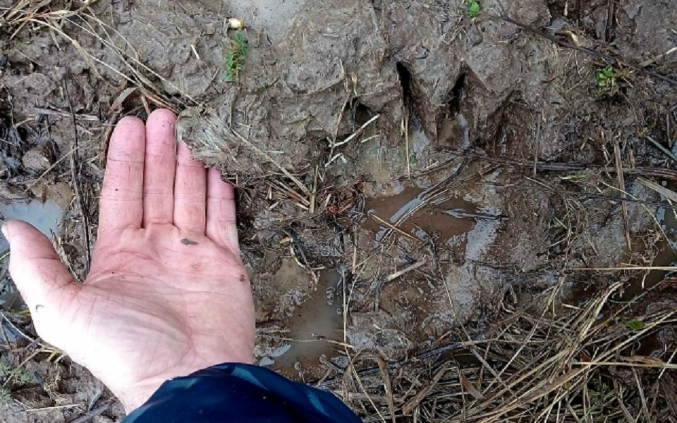 Снимки следов, сделанные охотниками, опубликовали в соцсетях представители Сасовского лесничества. Представление о размерах зверя дает сравнение следа с ладонью взрослого человека. "Будьте внимательны и осторожны при посещении лесов!" - обратились представители лесничества к местным жителям.