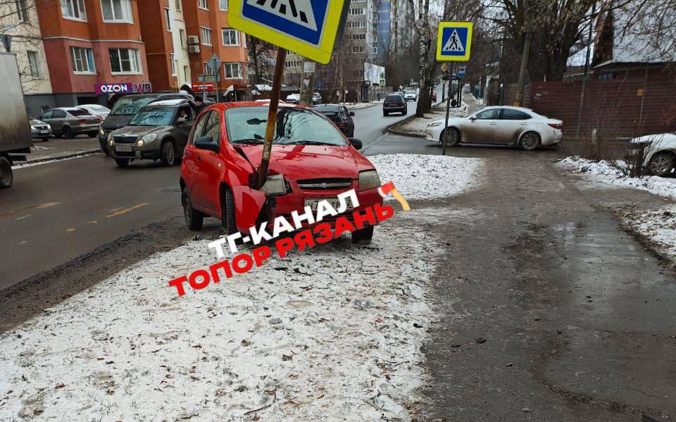 Днём во вторник, 16 декабря, в Рязани легковушка снесла дорожный знак. Кадры с места инцидента опубликованы в соцсетях.