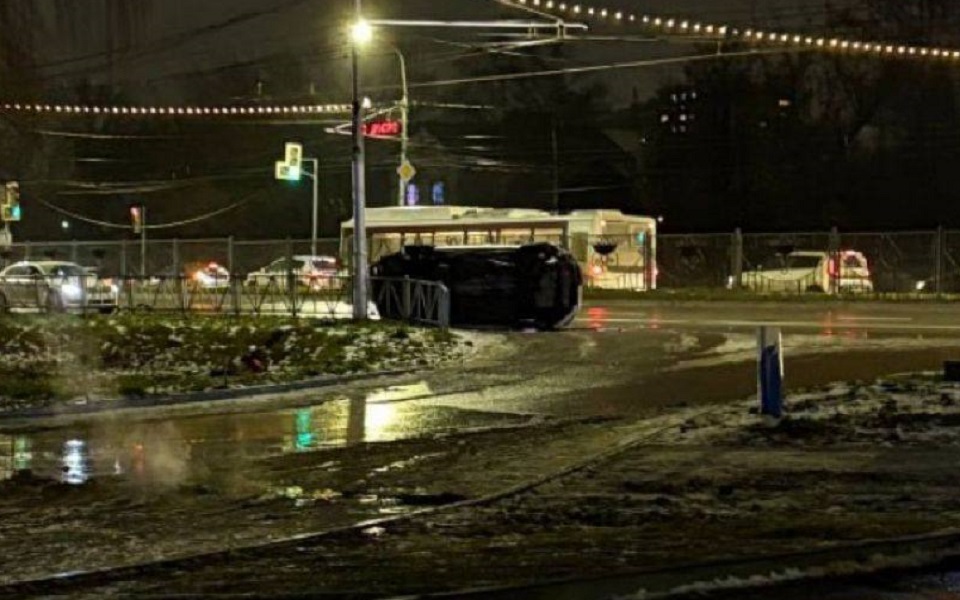 В Рязани опрокинулся легковой автомобиль.