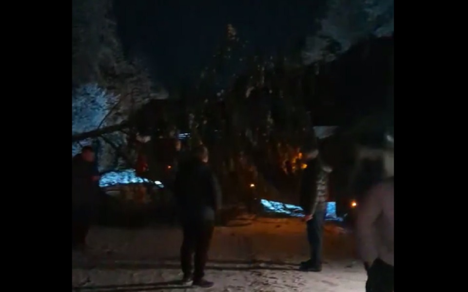 На кадрах видно, что поперек дороги лежит дерево, а перед ним собралось несколько машин.
