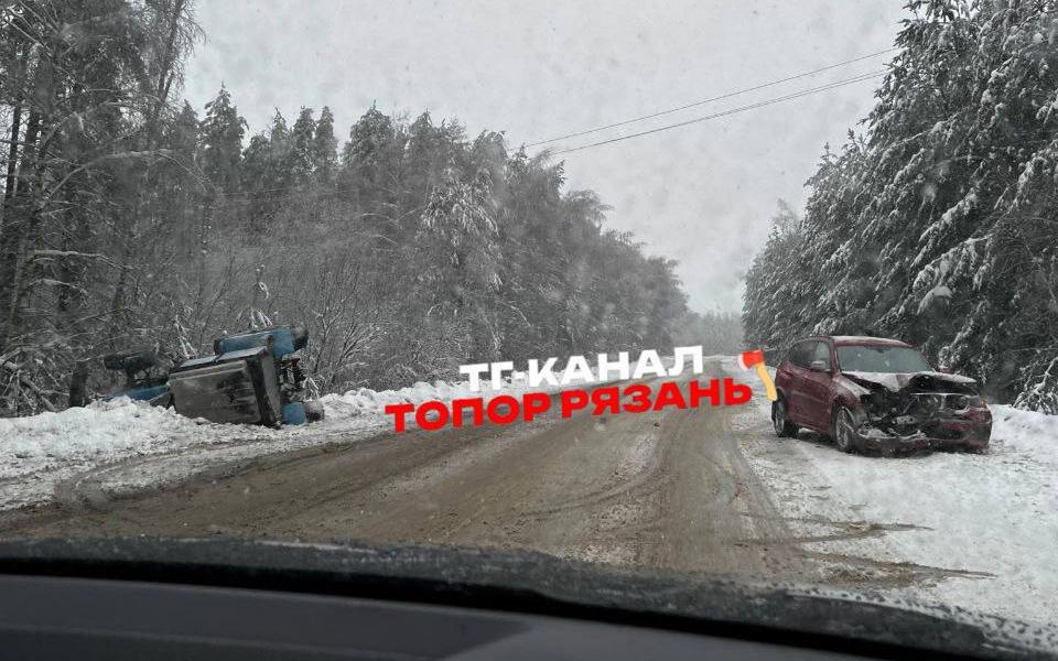 В пятницу, 9 января, под Рязанью произошла авария с участием трактора. Фото с места инцидента опубликованы в телеграм-канале «Топор. Новости Рязани».
