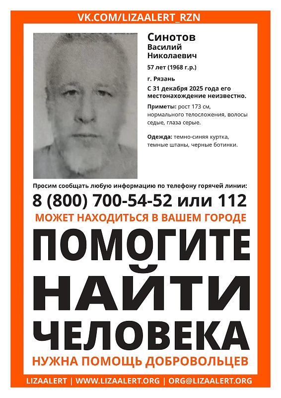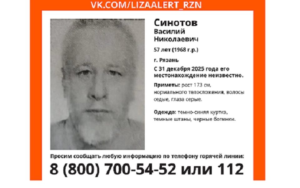 Василий Синотов пропал в Рязани. Где он находится, неизвестно с 31 декабря прошлого года.