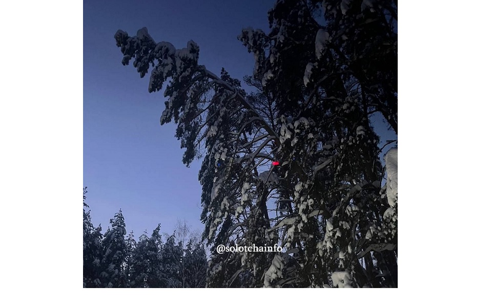 По дороге на «Сосновый бор» местный житель заметил 5-6 крупных сосен, готовых под тяжестью снега упасть на проезжающие машины.