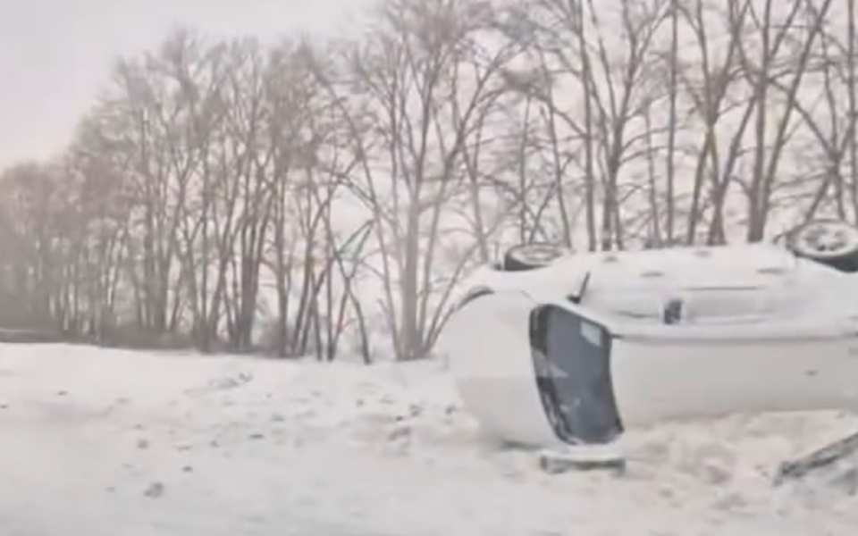 В социальных сетях появились фотографии, где виден внедорожник, лежащий на боку в кювете. Рядом на обочине с включённой аварийной сигнализацией стоят ещё две легковые машины. У одной из них повреждён передний бампер.