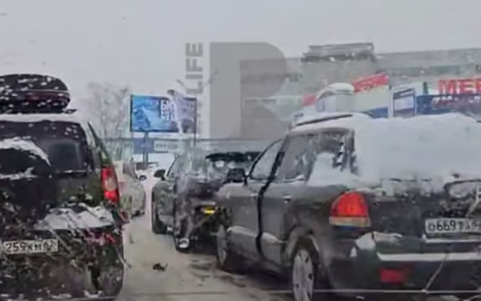 Очевидцы публикуют фотографии с места ДТП. Инцидент привёл к образованию пробки в обоих направлениях.