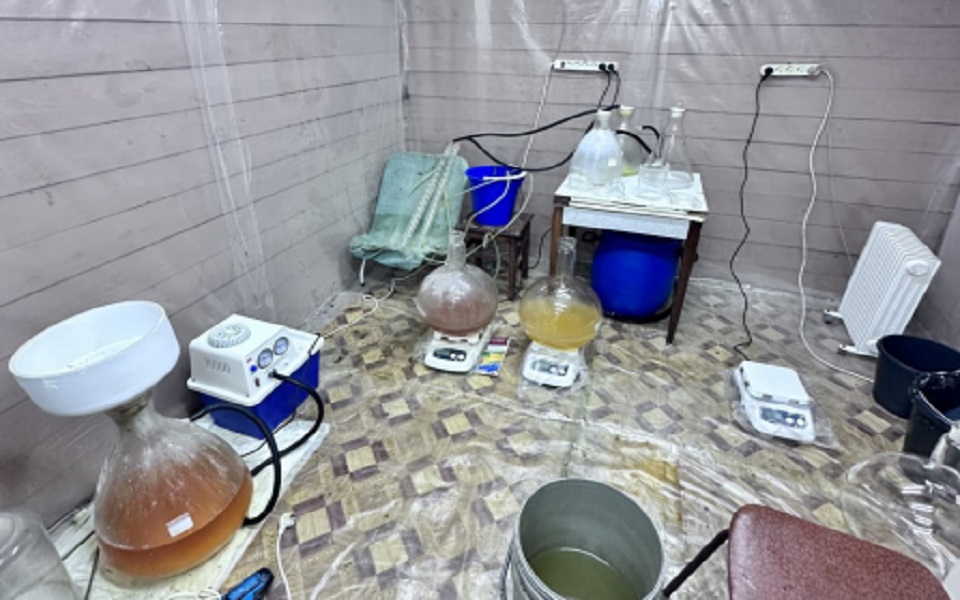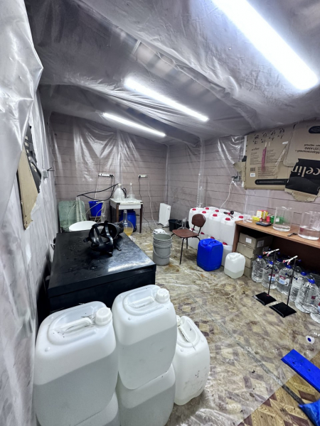 Из дома изъяли 8 кг готовых препаратов и примерно 27 кг прекурсоров. Нарколаборатория была неплохо оснащена: полиция обнаружила многочисленные колбы, вакууматор; технику, которая должна была облегчить труд наркопроизводителю.