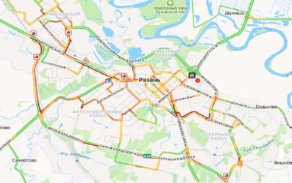 Практически нет движения на большом участке Московского шоссе, стоит Новая улица, пробка на Куйбышевском шоссе. Серьезно затруднен проезд по улице Зубковой и на Северной окружной.