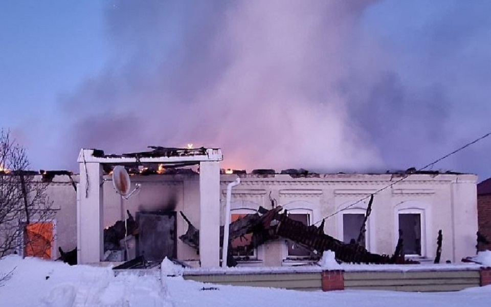 Огонь полностью уничтожил дом. В настоящее время устанавливаются точные причины произошедшего пожара.