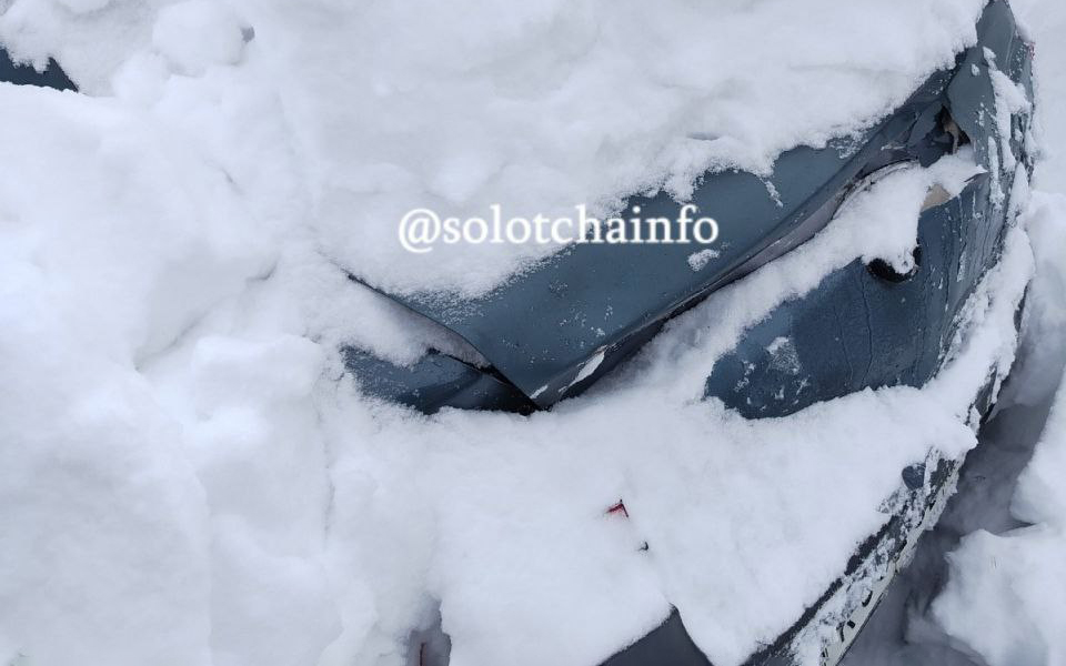 Спецтехника снесла припаркованный легковой автомобиль. На опубликованных в сети фотографиях видно, что машина получила механические повреждения.