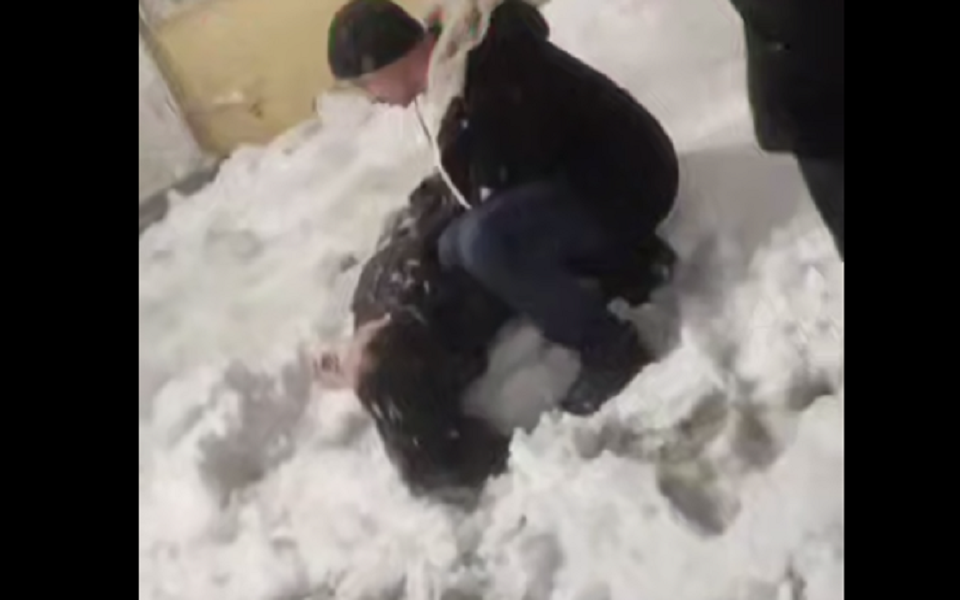 Уточняется, что ЧП произошло в центре города, судя по кадрам, вечером 4 марта. Прохожие увидели, как перед ними обрушилась лавина с крыши, а потом заметили лежащего человека.
