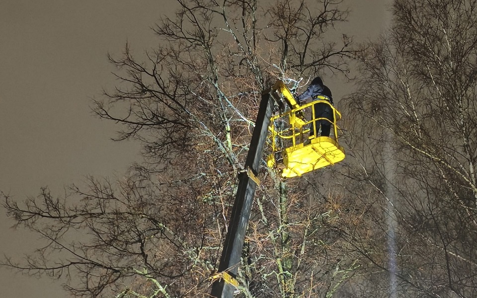 Дерево на улице Крупской, которое облюбовал хвостатый питомец, оказалось действительно высоким. Пришлось подгонять вышку, чтобы спустить застрявшего на ветках кота.