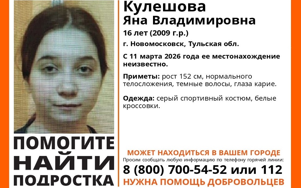 Девочка пропала еще 11 марта. Она из Новомосковска Тульской области.