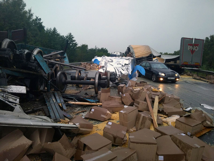 ДТП произошло в в 18:15. 47-летний житель Самары на грузовике Freightliner с полуприцепом, по предварительной информации, допустил занос задней части автомашины, а также полуприцепа, в результате чего перевозимый груз в виде алюминиевых катушек, весом примерно 10 тонн каждая, упал на полосу.