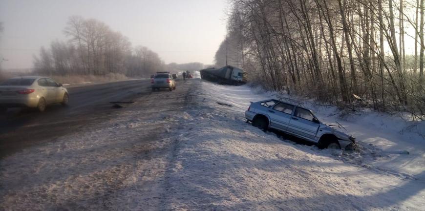 70-летний местный житель на ВАЗ0-2114, по предварительной информации, допустил занос транспортного средства и столкнулся грузовым автомобилем DAF с полуприцепом под управлением 28-летнего жителя Самарской области.