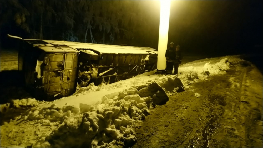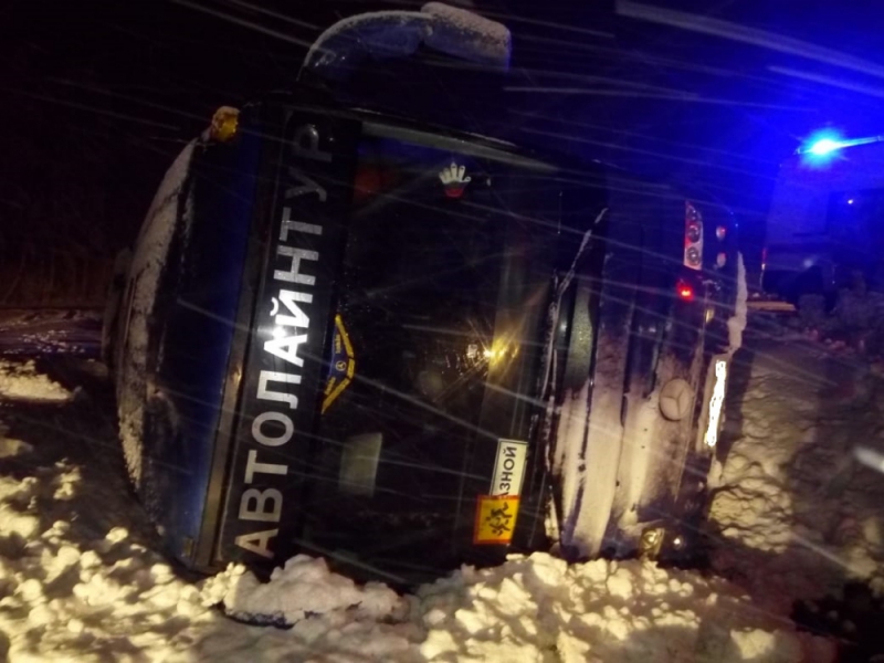 В салоне находились около 40 детей, два водителя и пятеро взрослых-сопровождающих. Предварительно, дети не пострадали. Одна из женщин получила помощь медиков на месте. Детей доставили в пункты временного размещения.
