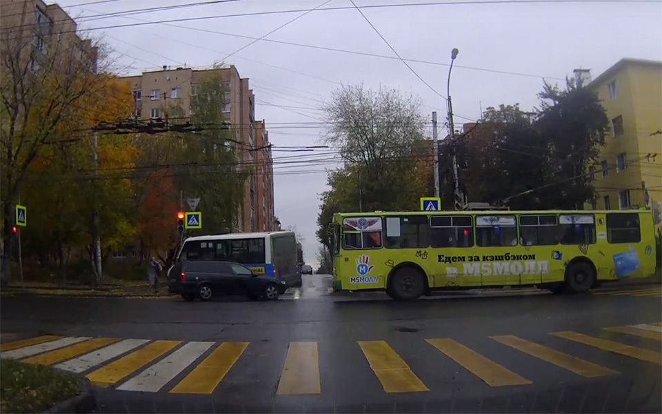 На кадрах видно, что водитель маршрутки, проезжая перекрёсток, вылетел на тротуар и сбил пешехода, ожидающего разрешающий сигнал светофора. После наезда девушка смогла подняться на ноги.