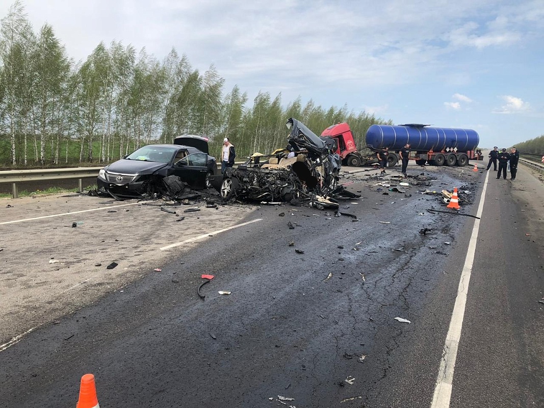 Водитель Mercedes погиб на месте, травмы также получили две пассажирки Toyota и водитель фуры. На месте работают сотрудники полиции.