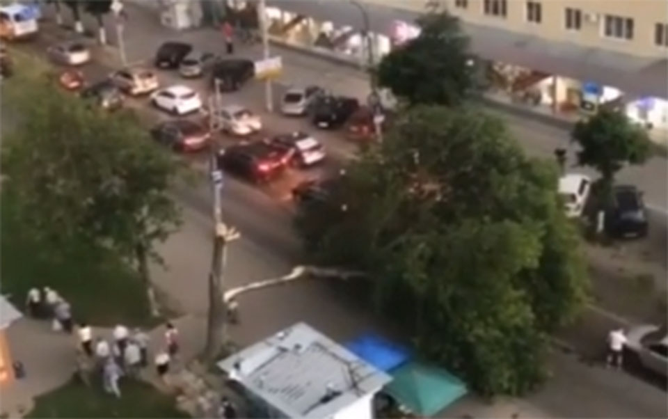 По свидетельству очевидцев, дерево упало на автомобиль.