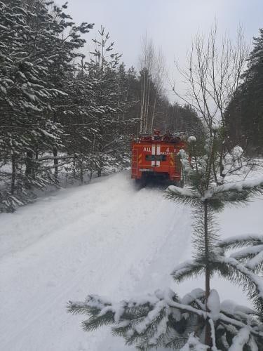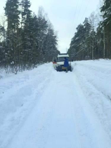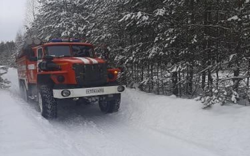 Автомобиль врачей увяз в колеях на лесной дороге. На помощь медикам отправили пожарных. Машина спасателей прибыла, чтобы попробовать вызволить «скорую» из снежного плена.