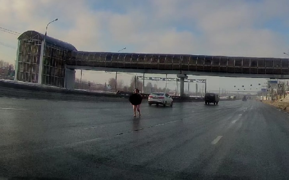 Рязанский водитель опубликовал кадры, на которых запечатлена голая женщина, быстро идущая прямо про проезжей части.