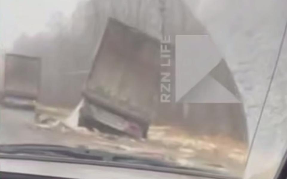 Авария произошла у села Казачий Дюк. Участниками аварии стали два грузовика, один из них развернуло на дороге, второй съехал с трассы в лесополосу. На месте работали экстренные службы.
