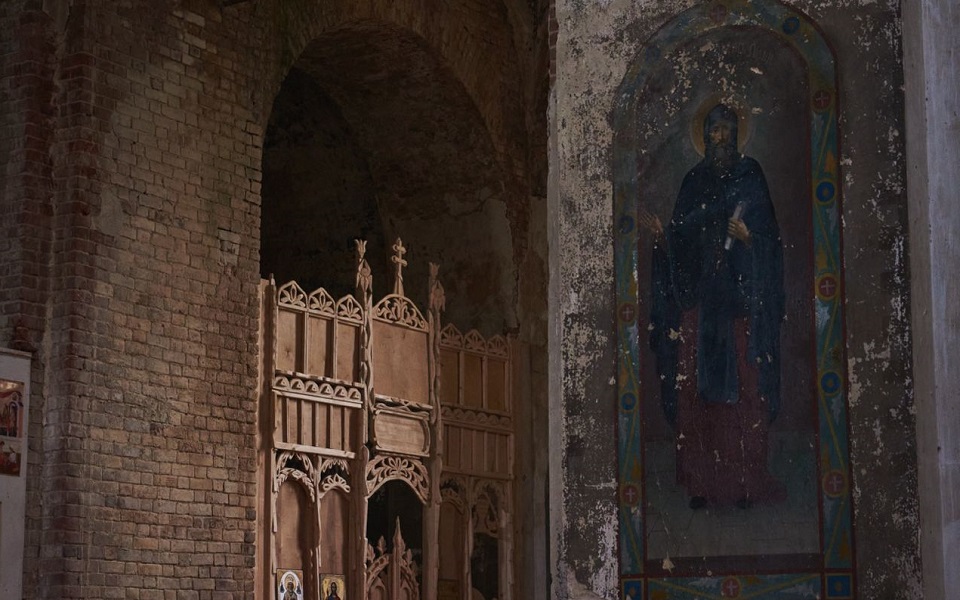 Потом такой она церковь не помнит: в 30-х её закрыли, а потом отдали под колхозный склад. Грузовики въезжали через засыпанный землёй порог, оставляли грязные следы на выложенных плиткой полах. Ефрем Сирин с фрески смотрел на груды зерна, на заколачиваемые досками окна; на приткнутые в угол до следующей демонстрации лозунги о "пятилетках в четыре года".