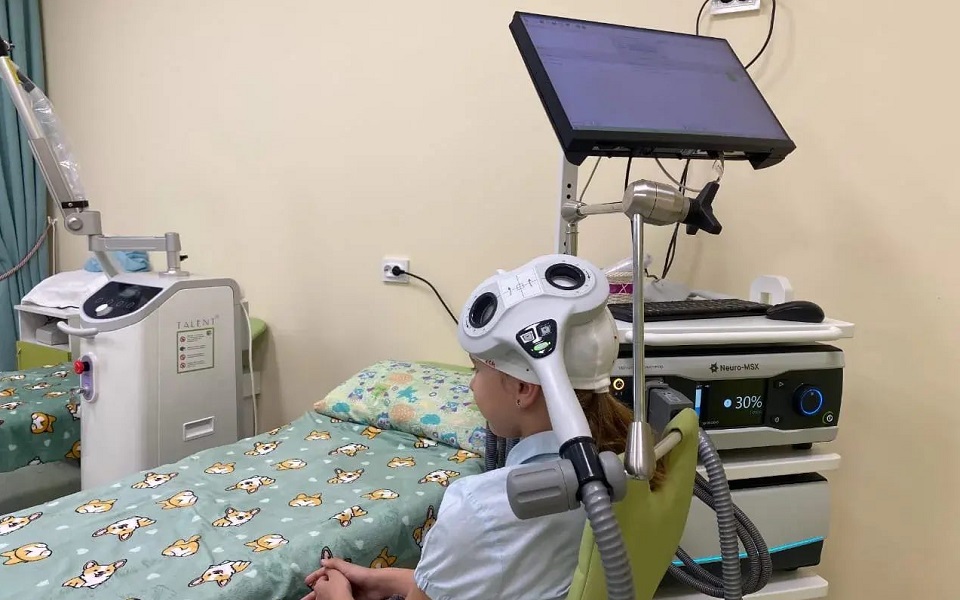 Недавно появилась новинка - аппарат для лечения психических и неврологических заболеваний «Neuro-МSX». Транскраниальная магнитная стимуляция применяется с трех лет. Спектр показаний широк: от последствий родовых травм до заикания.