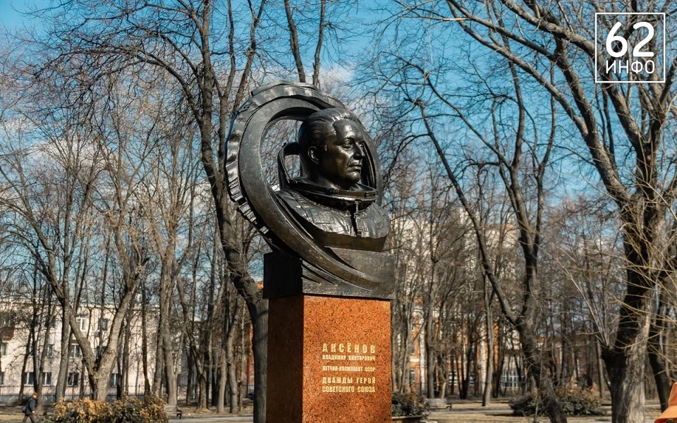 Тут же, в сквере имени Уткина, установлен ещё один бюст – космонавту Владимиру Аксёнову. Он бывал в космосе дважды, в общей сложности провёл там 11 суток 20 часов 11 минут. Владимир Аксёнов – 36-ой лётчик-космонавт СССР. Он тоже родился в Касимовском районе.