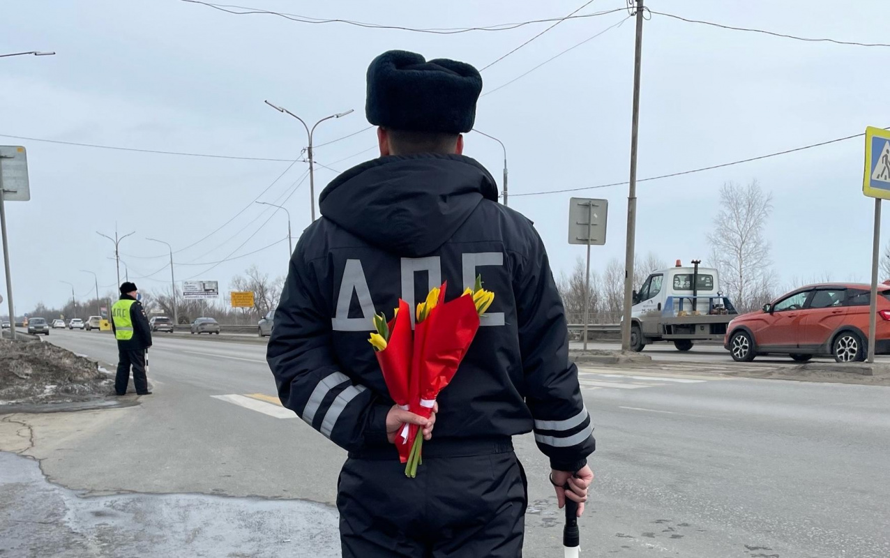 В Международный женский день сотрудники ГИБДД поздравляют женщин-водителей.