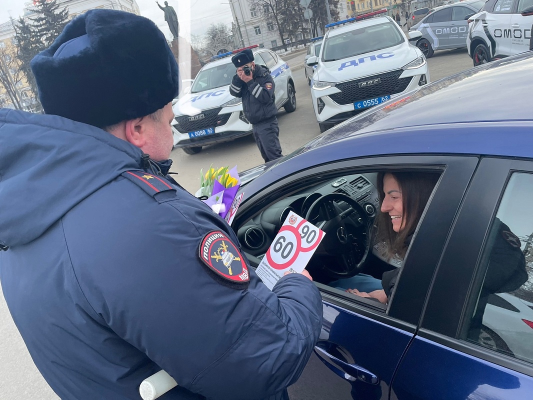 В праздничный день инспекторы ДПС и руководители региональной ГИБДД дарят женщинам цветы и добрые пожелания. Рязанки благодарят за хорошее настроение и оказанное внимание.