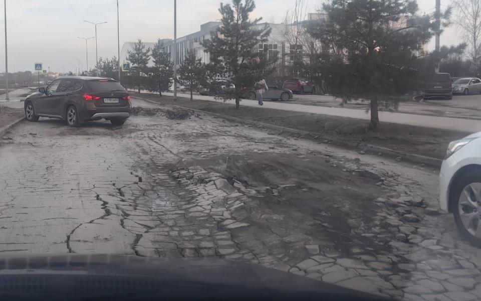 Жители Рязани пожаловались на разбитую дорогу возле Академии единоборств. Пост появился в группе ПУВР 2 апреля.