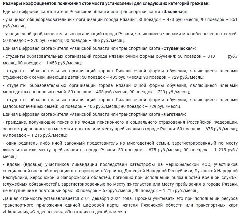 Теперь рязанцы могут выбрать фиксированное число поездок в 50 или 90 в месяц. Указывается, что при расчёте стоимости тарифа использовалась «уточнённая формула».