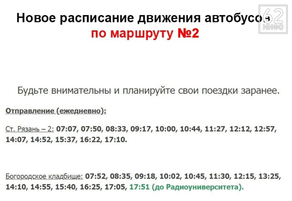 Таким образом, на маршрут № 2, связывающем Рязань-2 и Богородское кладбище, будут выходить два автобуса, на 22-й (между Рязанью и Солотчей) – 22.