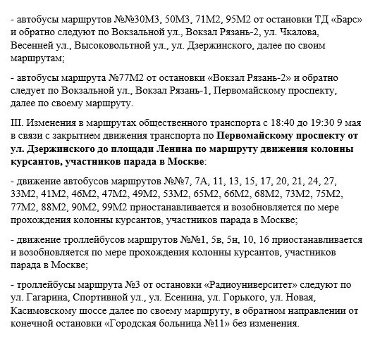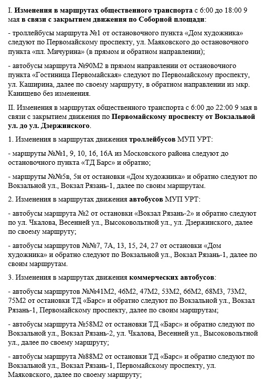 Рязанцев предупредили об изменении маршрутов общественного транспорта 9 мая. Подробности опубликованы на сайте администрации города.