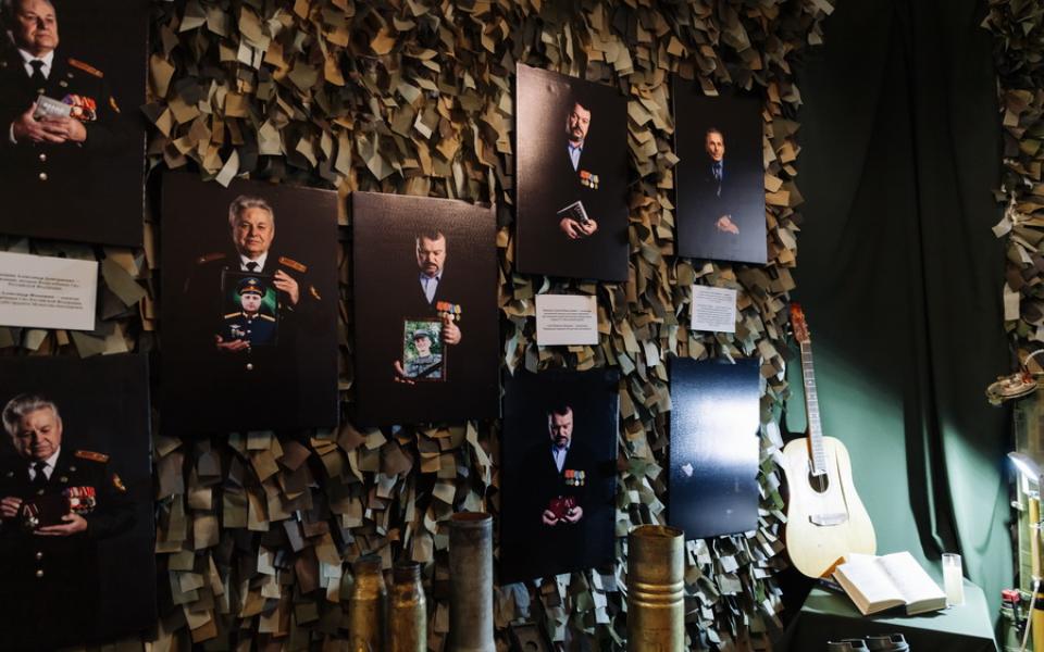 Здесь представлены фотографии отцов участников спецоперации, которые держат в руках портреты своих сыновей и их награды: всего 13 имен, 13 жизненных историй.