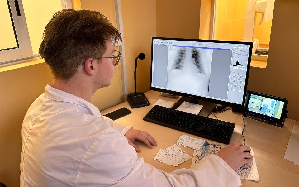 Кабинет флюорографа работает в две смены. Снимки сразу отправляются врачу.