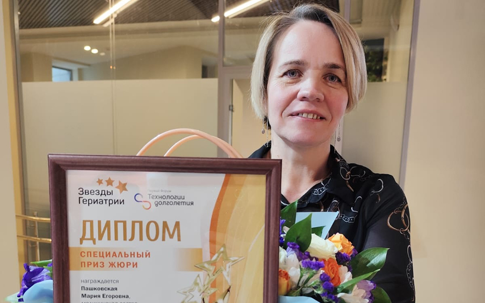 Медицинская сестра гериатрического центра Мария Пашковская получила специальный приз жюри в конкурсе «Звёзды гериатрии» на первом форуме «Технологии долголетия» в Москве. Об этом сообщает минздрав Рязанской области.
